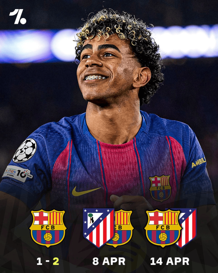 04月15日3:00欧冠1/4决赛马德里竞技vs巴塞罗那