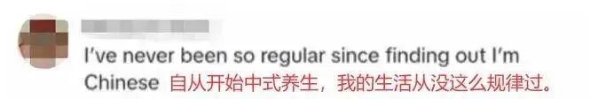 起初,朱溪瑞觉得网友们学习她的中式养生不过是一阵跟风,但越来越多的人反馈给她,喝热水很舒服、睡前泡脚很舒服。不但有人开始早餐煮粥、喝蜂蜜柠檬水、食用中式蔬菜,还有人留言:“作为新晋‘中国人’,我如今拥有三双室内拖鞋,已经好几周没碰冷饮了,对这份新生活格外认真”。